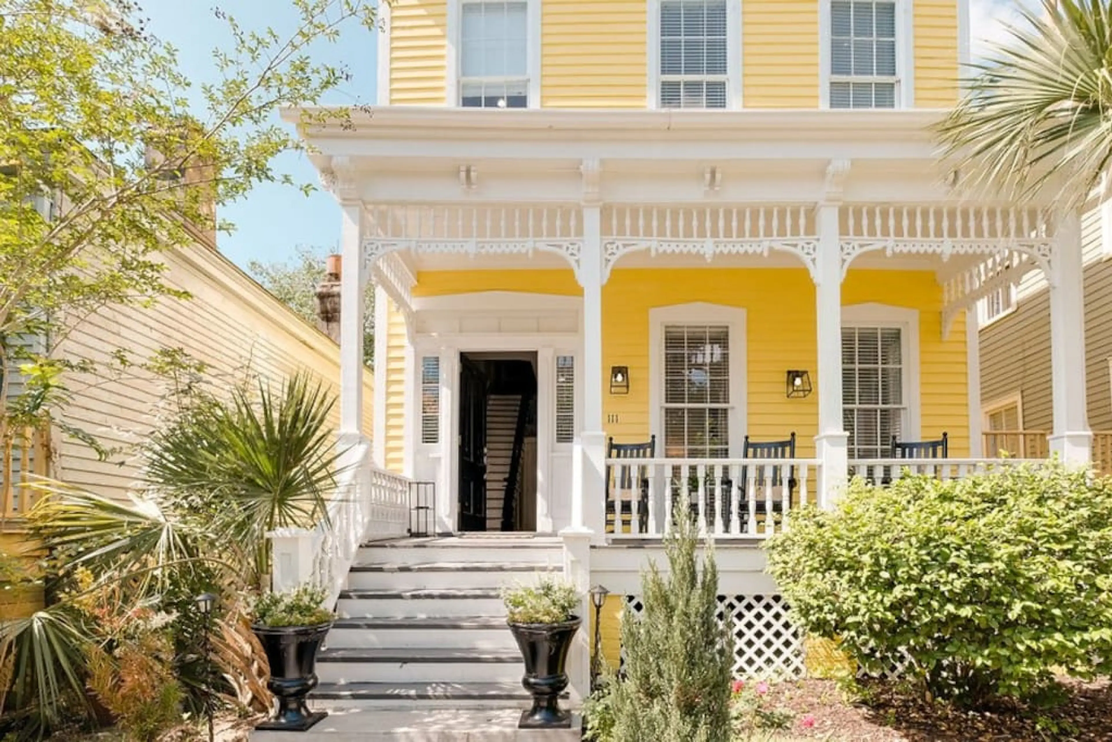 This is a large stand-alone home! It's a 5-bedroom, 7 beds plus a double sofa bed pull-out, and 5-bathroom beauty with multiple sprawling porches and a balcony with views of Forsyth Park. Also, 3 out of 5 of our bedrooms have ensuite bathrooms. The house is recently fully renovated and features an o...